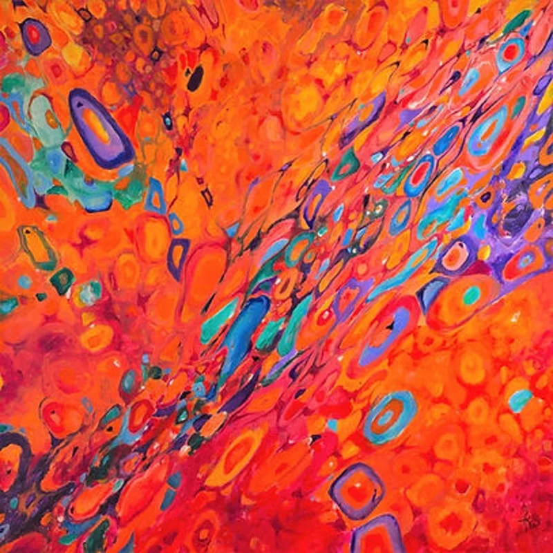 Healing Chakras – is a unique multi-dimensional Collection of 7 major Chakras energetically represented on canvas with their individual characteristics, dominant colors, frequencies, patterns and energies. It took me over 3 years to complete this Collection of canvases. Now I am working on creating auditory, olfactory and other modalities that are energetically coordinated with the visual modality. These artworks are intuitively channeled and activated with each Chakra individual energy in accordance with the Yogi principles, Sacred Geometry, and other Energetic & Spiritual Laws. There are seven major colors in the spectrum that correlate with seven main Chakras – dark red, orange, yellow, green, blue, indigo and purple. I believe that if one has an emotional, physical, mental, or spiritual imbalance you can enhance your own healing by bringing in the color(s) vibrations that resonate at the same frequency, as well as corresponding sound (note), vibration, scent, breath, movement, etc. to enhance your multi-sensory healing experience. © HelenKagan HealingARTS